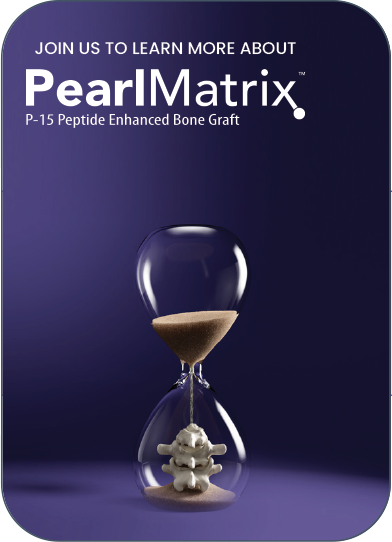Looking forward to seeing you at our Surgeon led program, introducing the first and only bone growth accelerator powered by P-15, Pearl Matrix™. This program highlights the science and evidence behind bone grafting options. Including a dynamic peer-to-peer case discussion.